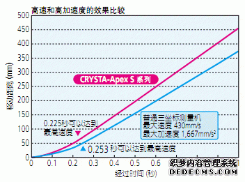 日本三豐三坐標CRYSTA-Apex S7106系列的最大驅動速度為519mm/s,最大驅動加速度為2,309mm/s2【500/700/900 系列】。與普通的CNC 三坐標測量機(最大驅動速度430mm/s,最大驅動加速度1,667mm/s2) 進行比較,開始移動1秒后,移動距離產生約100mm 的差。與一般的CNC 三坐標測量機(最大測量速度5mm/s) 相比較,Crysta-Apex S 系列的測量速度(與測量物的接觸速度) 設定為最大8mm/s,能夠實現極度高速的測量,再與Crysta-Apex S 系列的驅動速度? 驅動加速度相配合,總測量時間能夠大幅度縮短。測 量個體增加越多,該差也越大,說明了測量成本的差異。